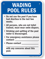 For those states that do not, we recommend S-7762, a generic Wading Pool Rules Sign, for your wading pool.