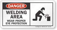 Hazards of welding include light radiation, heat, harmful dust, smoke and fumes. The proper safety policies can safeguard your employees from these hazards. Put up proper Welding Safety Signs in your workplace to reinforce these safety policies. This site has the best collection on the web of Welding Signs. You can choose from a variety of our Welding Safety Signs that have bold and proven pictographs and text messages.