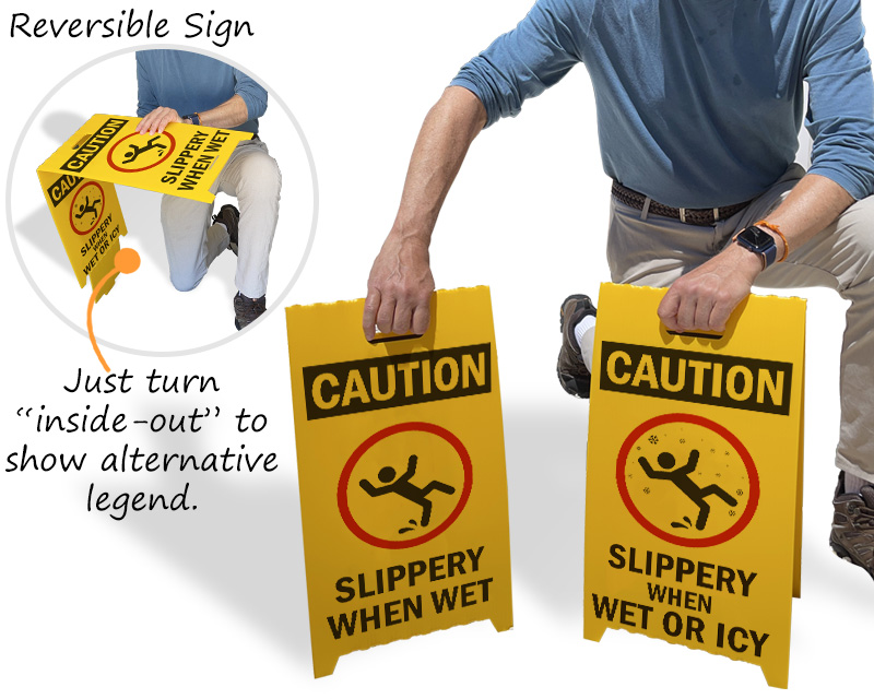 Of course, there is. Go for our Reversible Fold-Ups® wet floor sign that is lightweight and made from recycled corrugated plastic. The sign is waterproof and reversible, so you can convey two different messages at a rather pocket-friendly price.